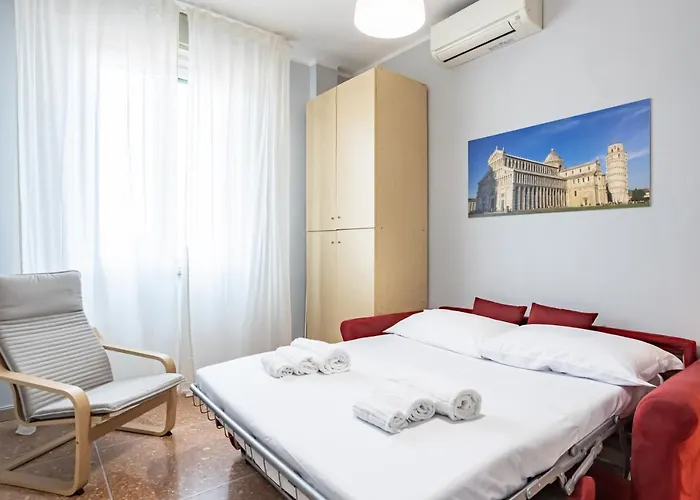 Yellowsunny Apartment With Two Balconies leiligheten ligger 1 km fra Det Skjeve Tårn I Pisa og 1,1 km fra Arena Garibaldi - Stadio Romeo Anconetani. Torre dei Belforti ligger i umiddelbar nærhet, og sentrum av Pisa ligger 15-minutters gange unna. Antica Trattoria Da Bruno med toskanske retter venter på gjestene på bare 5-minutters gange. Boligen ligger i nærheten av Fortezza Sangallo. Pisa flyplass ligger en 5-minutters kjøretur unna, og Stazione 5 ligger 250 meter fra boligen.
